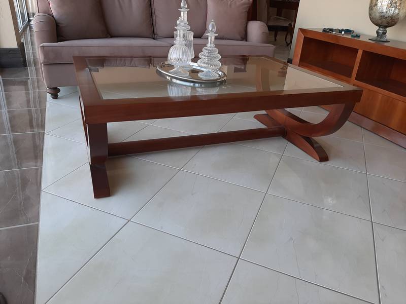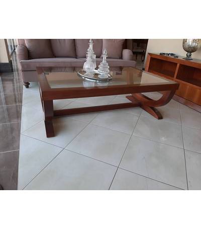Τραπεζάκι από ξύλο καρυδιάς και τζάμι 130 x 90 x 45h