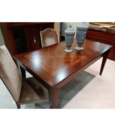 Τραπέζι χειροποίητο από ξύλο καρυδιάς με μαρκετερί και δυο προεκτάσεις 180-95-49h